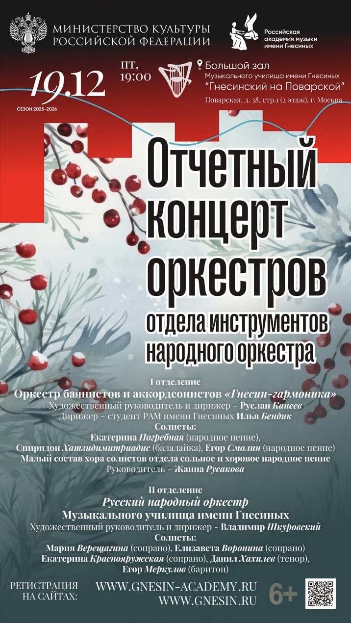 19 декабря 2025 – Концерт Русского народного оркестра Музыкального училища имени Гнесиных