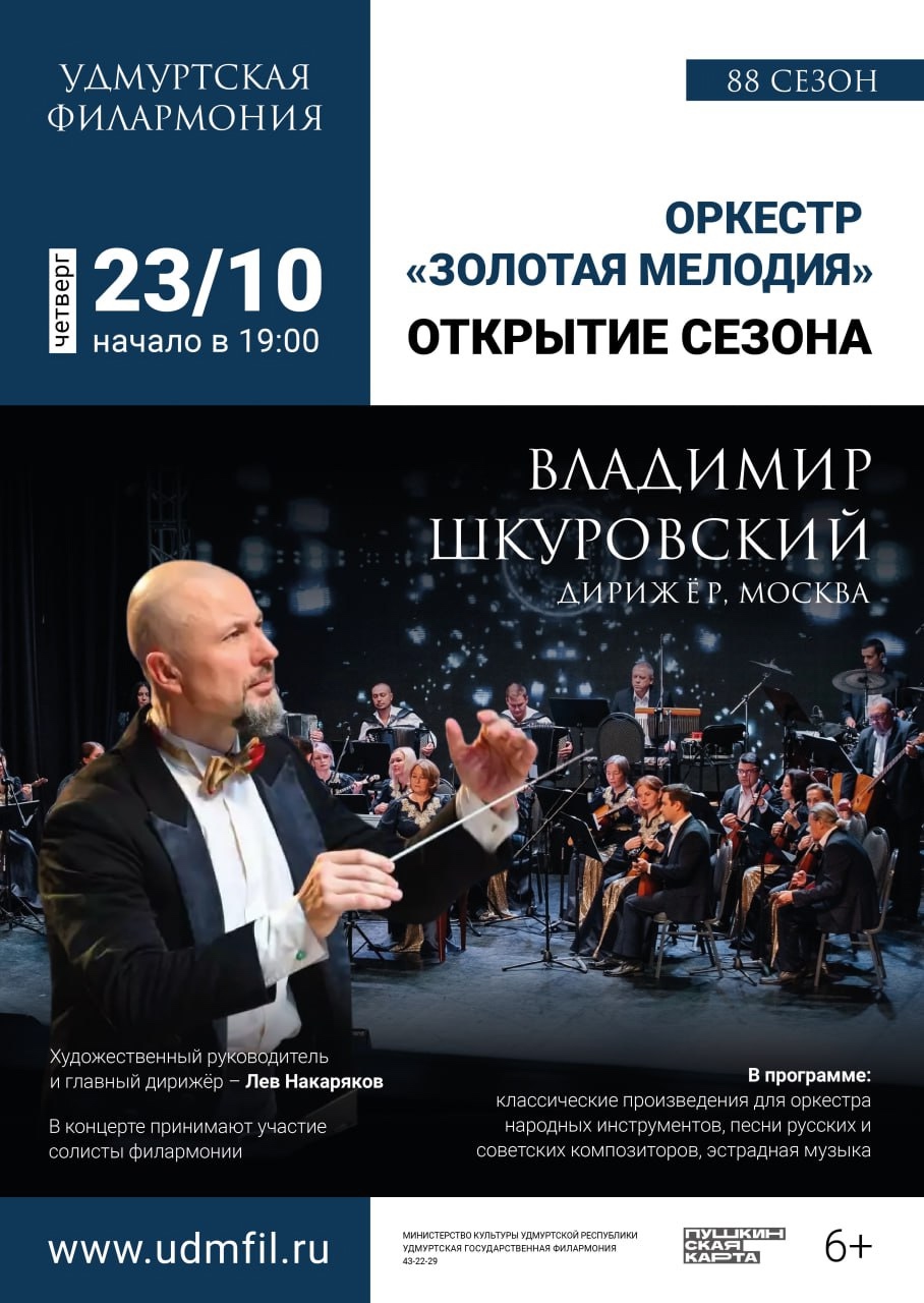 23 октября 2025 – Концерт в Удмуртской филармонии с Ижевским оркестром “Золотая мелодия” Опубликовано 20.09.2025 автором admin